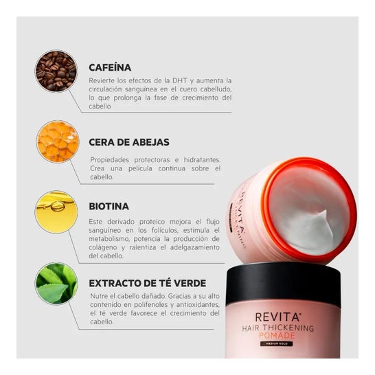 Revita Hair Thickening Pomade Cire pour Cheveux 100ml est idéale pour ceux qui souhaitent une coiffure définie et des cheveux plus épais et en meilleure santé. Conçue pour lutter contre les cheveux fins ou affaiblis, cette cire offre :