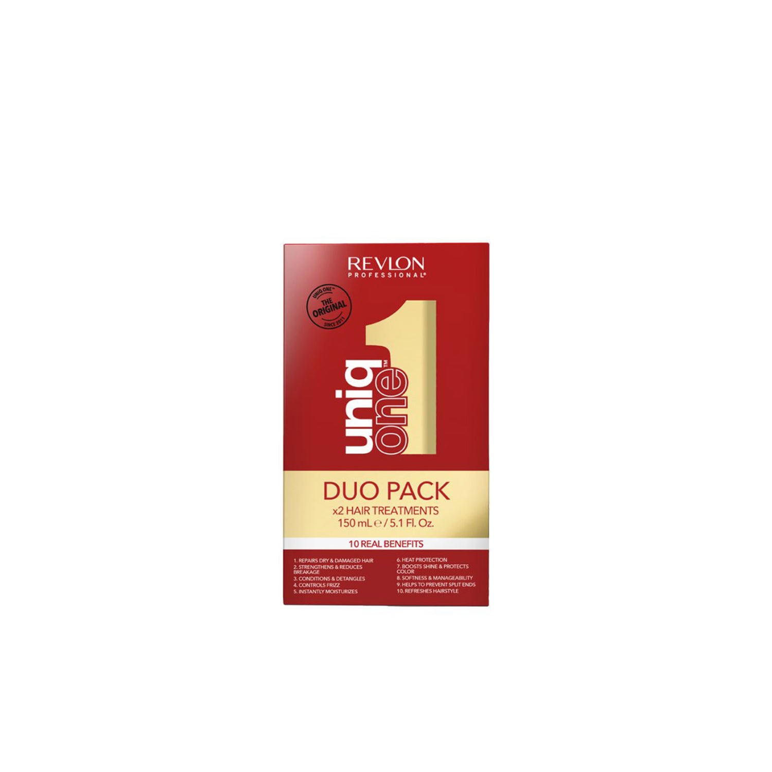 Revlon Uniq One Duo Pack All In One Hair Treatment 2x150ml est un traitement capillaire sans rinçage qui transforme la santé et la beauté des cheveux à chaque application. Sa formule professionnelle est adaptée à tous les types de cheveux et offre une solution complète pour les soins quotidiens, étant parfaite pour ceux qui souhaitent réparer, protéger et embellir les cheveux avec des résultats visibles dès la première utilisation.