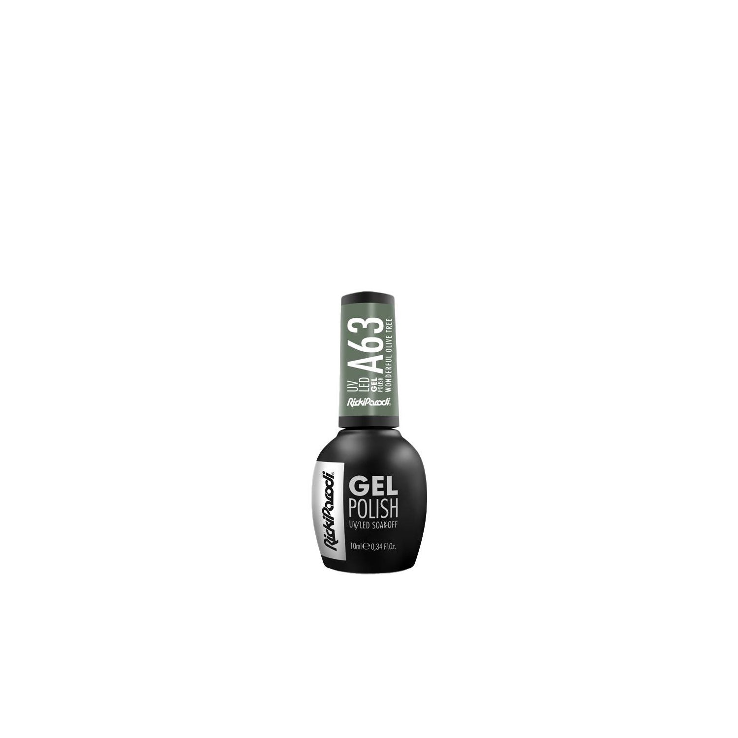 RickiParodi Vernis Gel A63 Wonderful Olive Tree 10ml est un vernis dans une teinte attrayante vert olive. Cette couleur est idéale pour la saison automnale, évoquant des images de vignobles et de feuilles tombées.
