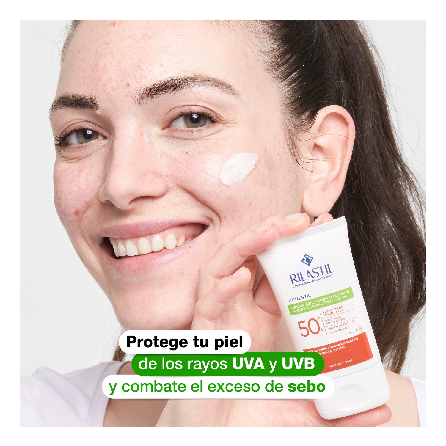 Crème avec une protection solaire à large spectre qui aide à protéger la peau contre les rayons du soleil qui peuvent causer des taches sombres, la déshydratation et les rides. Sa texture d'émulsion légère est spécialement conçue pour les peaux grasses et à tendance acnéique, car elle laisse un fini mat sur la peau.