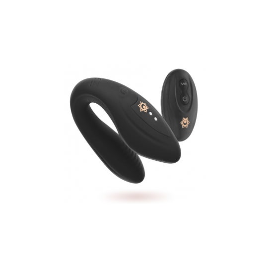 Vibrateur stimulateur génital avec télécommande. Fabriqué en silicone médical, 100% hypoallergénique. Il est doté de deux moteurs qui permettent de stimuler simultanément le pénis, le vagin, le clitoris et la zone génitale. Il peut être utilisé seul ou en couple. Aide à masser et à stimuler les zones érogènes du corps. Avec 10 programmes de vibration différents. Il est imperméable et résiste à la douche. Respectueux de l'environnement, il se recharge via un câble USB. Couleur noire opaque.