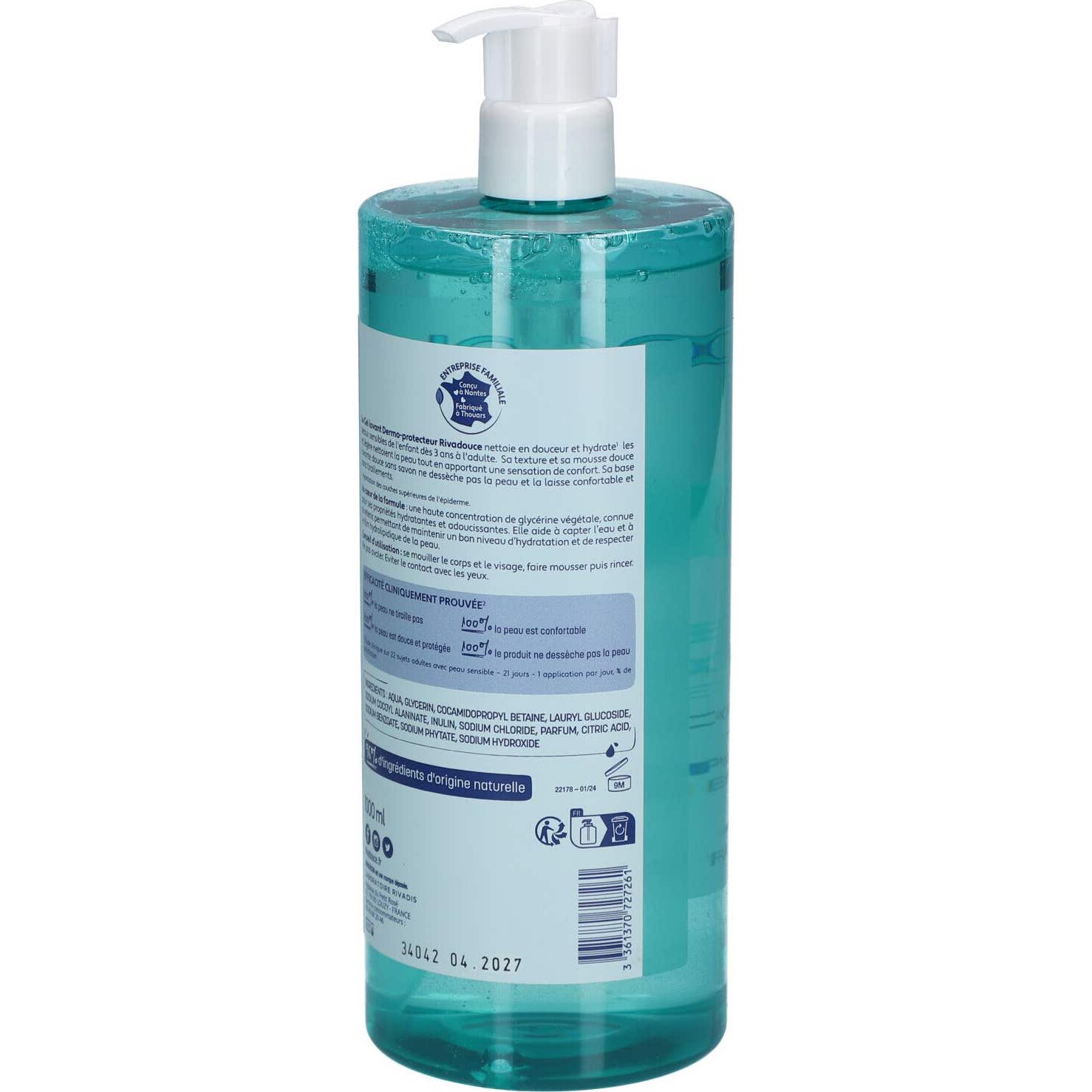Rivadouce Gel Lavant Dermo Protecteur 1000 ml est un produit conçu pour le nettoyage doux de la peau. Ce gel lavant s'occupe de nettoyer à la fois le corps et le visage sans provoquer de sécheresse, offrant en même temps hydratation et protection. Il est adapté à tous les types de peau, y compris les plus sensibles, et peut être utilisé à partir de 3 ans.