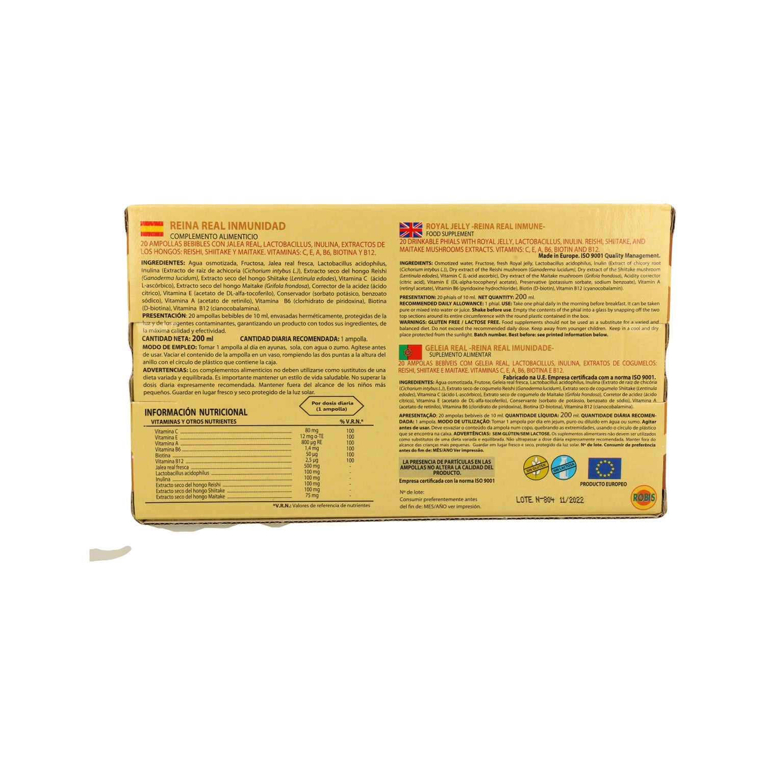 Complément alimentaire naturel qui aide à améliorer les défenses, à renforcer les fonctions et à rendre l'organisme fort pour se défendre contre les maladies et les problèmes de santé. Il contient des ingrédients enrichis en probiotiques, en vitamines C, A, B12, B6, Biotine et E, ainsi qu'en Reishi, Shiitake et Maitake pour renforcer au maximum vos défenses. Format 20x10ml.