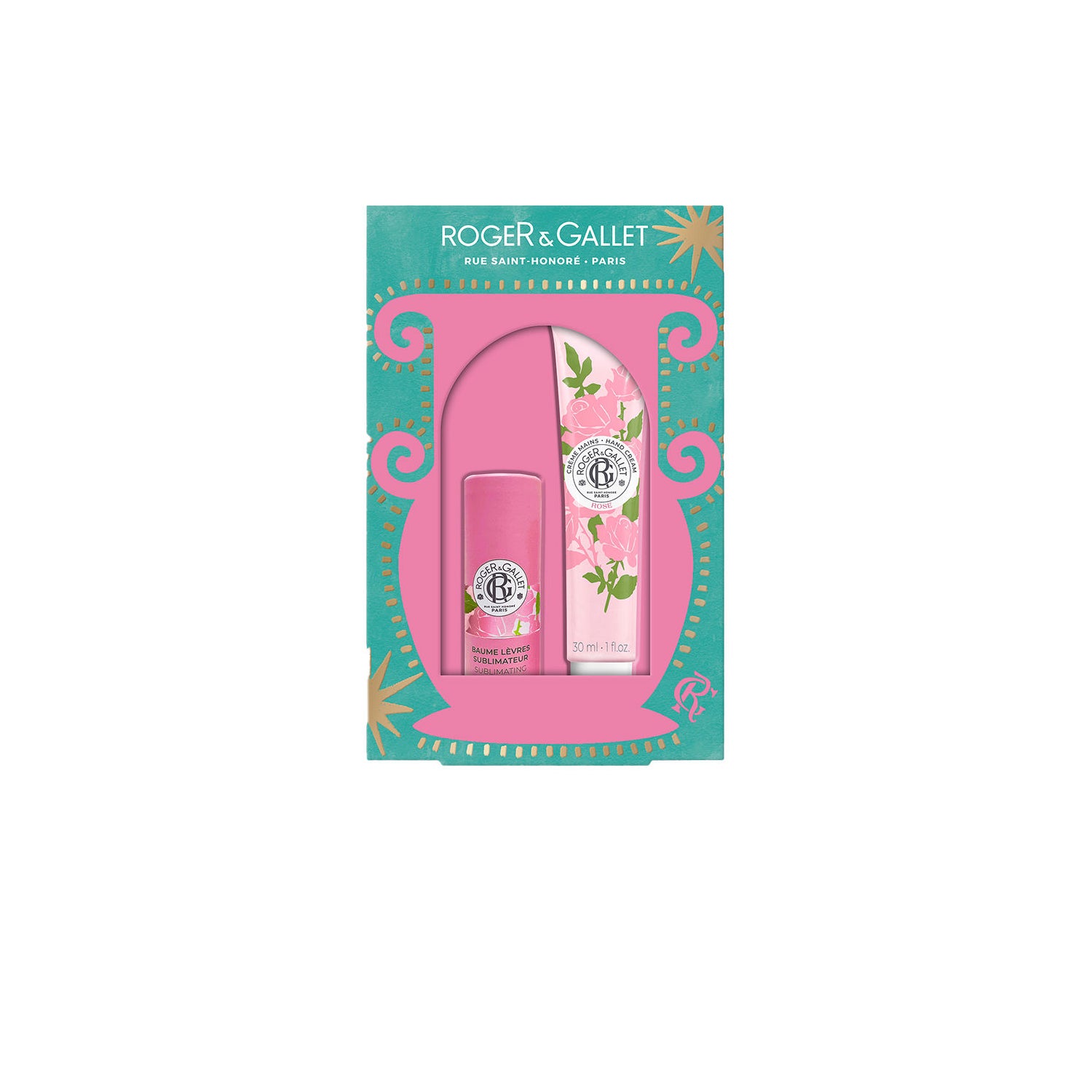 Roger & Gallet Rosa Pack Baume à Lèvres + Crème pour les Mains comprend un baume à lèvres et une crème pour les mains pour hydrater et embellir les lèvres et les mains sèches, avec la douceur de la rose Damascena. Fabriqué en France, il dispose de formules végétaliennes et testées dermatologiquement.