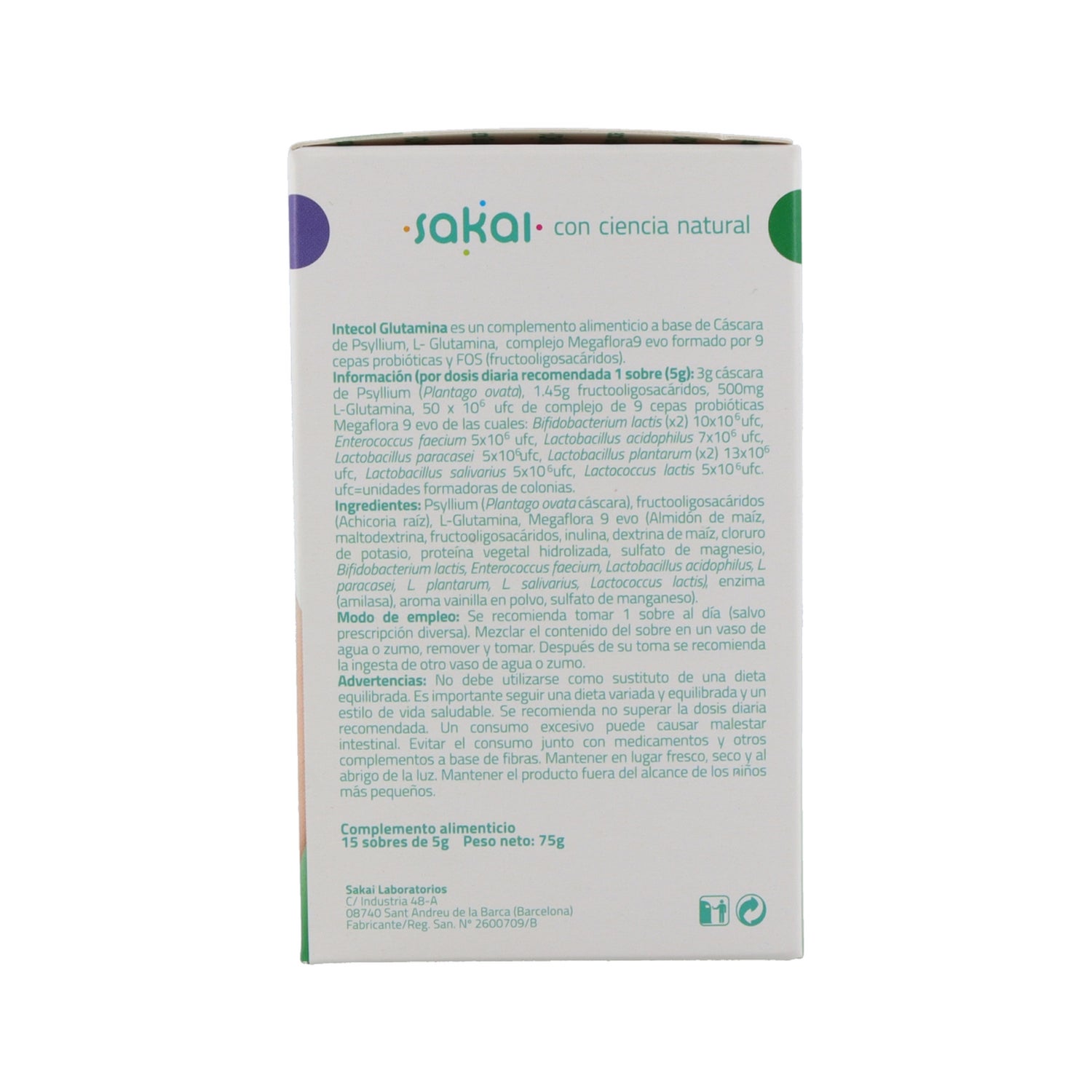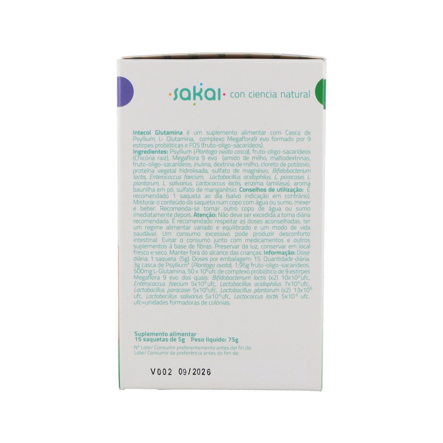 Psyllium (enveloppe de Plantago ovata), fructo-oligosaccharides (racine de chicorée), L- Glutamine, Megaflora 9 evo (amidon de maïs, maltodextrine, fructo-oligosaccharides, inuline, dextrine de maïs, chlorure de potassium, protéines végétales hydrolysées, sulfate de magnésium, Bifidobacterium lactis, Enterococcus faecium, Lactobacillus acidophilus, L. paracasei, L. plantarum, L. salivarius, Lactococcus lactis, enzyme (amylase), arôme de vanille en poudre, sulfate de manganèse).
