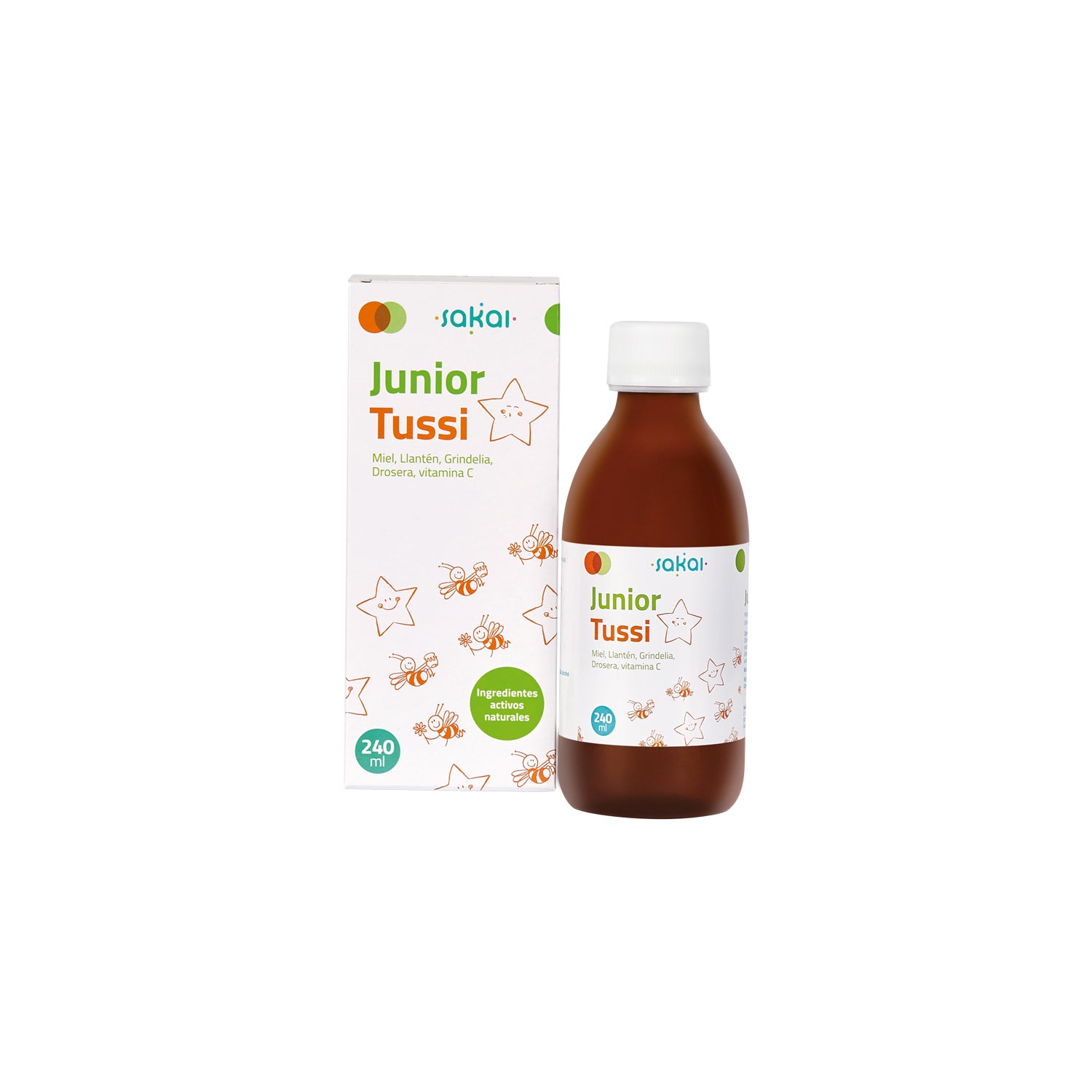 Sakai Junior Tussi Syrup 240ml est un complément à base de miel, de vitamine C (de l'Acérola) et d'extraits de plantain, de grindelia et de rossolis. Il aide à activer la réponse du système immunitaire contre les processus catarrhaux.