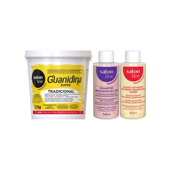 Salon Line Guanidina Tradicional Kit Super est un produit conçu pour lisser et détendre les cheveux. Sa formule est conçue pour fournir des cheveux détendus, conditionnés et revitalisés.