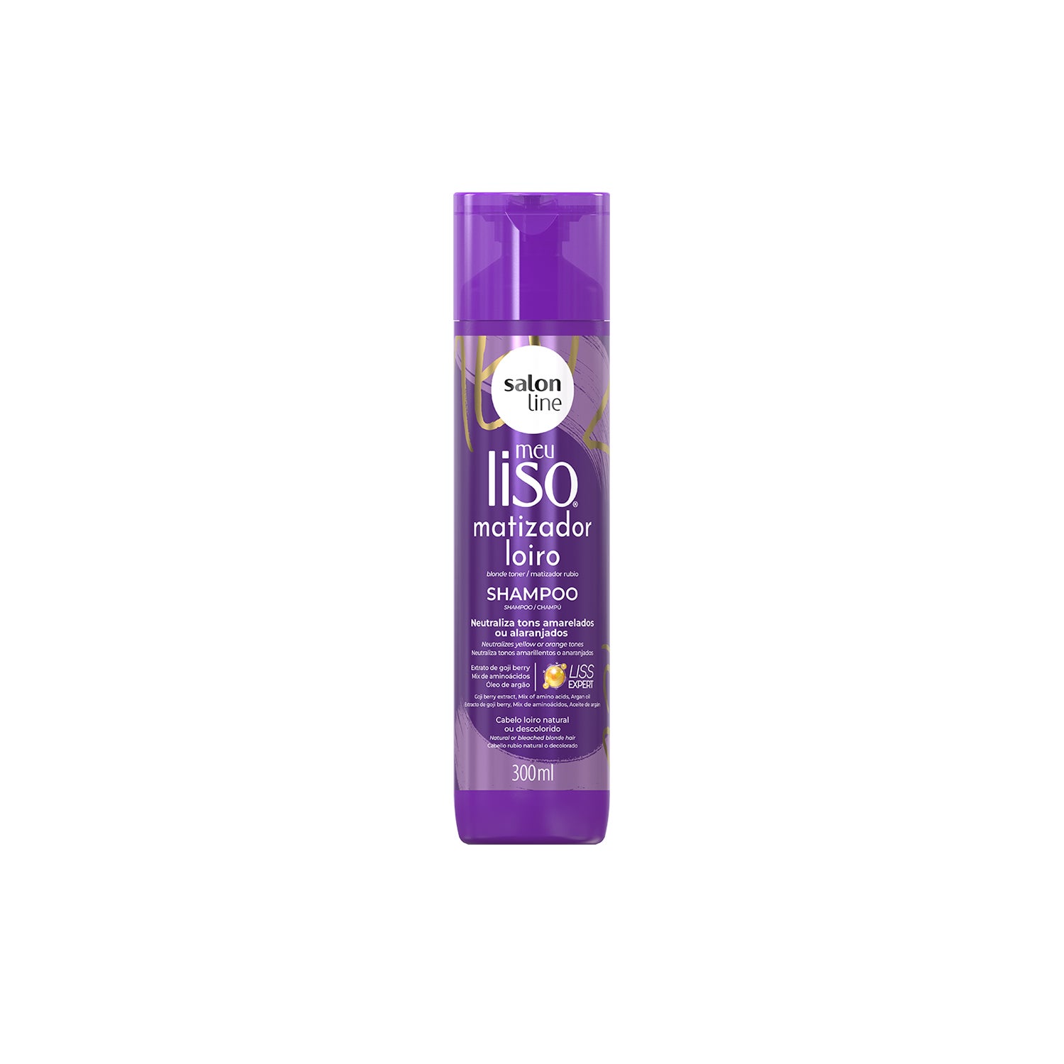 Salon Line Meu Liso Matizador Loiro Shampoo 300ml est un produit conçu spécifiquement pour les cheveux blonds, qu'ils soient naturels ou décolorés. Sa principale fonction est d'éliminer les teintes jaunâtres ou orangées qui peuvent apparaître sur les cheveux blonds.