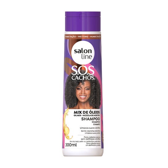 Salon Line Sos Cachos Shampoo Mix Óleos Nutritivo 300ml est un produit conçu pour fournir un soin intégral aux cheveux bouclés et crépus, spécifiquement ceux classés comme 3ABC et 4ABC. Ce shampooing se distingue par sa formulation enrichie d'un mélange de 12 huiles, qui comprend :