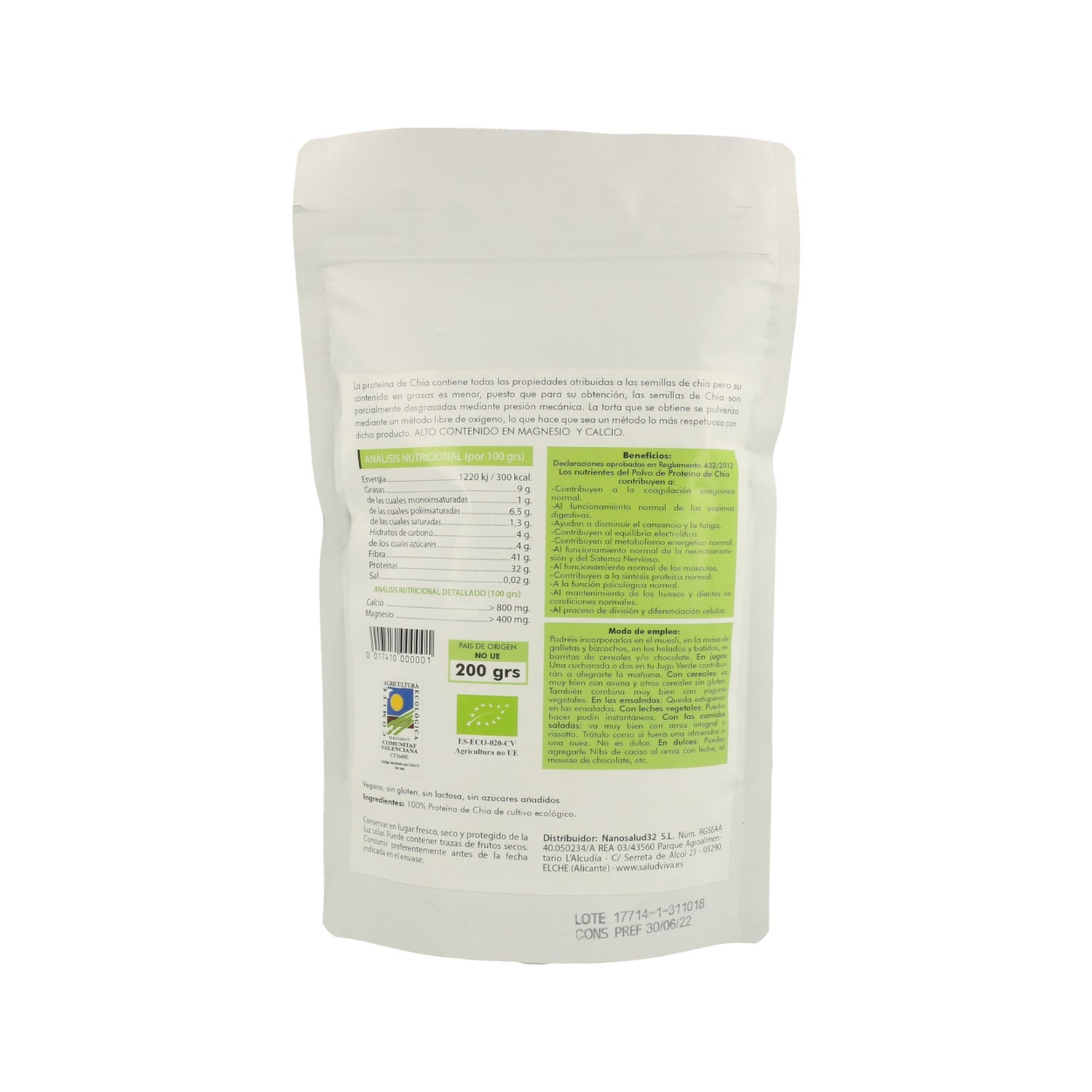 Source végétale d’acides gras oméga-3 (acide alpha-linolénique), il se distingue également par sa teneur en protéines et en fibres. Il apporte des vitamines du groupe B, des minéraux (comme le calcium, le potassium, le magnésium, le fer, le cuivre et le zinc) et d’autres substances antioxydantes. C’est donc une bonne source de nutriments et de micronutriments. À noter qu'il ne contient pas de gluten.