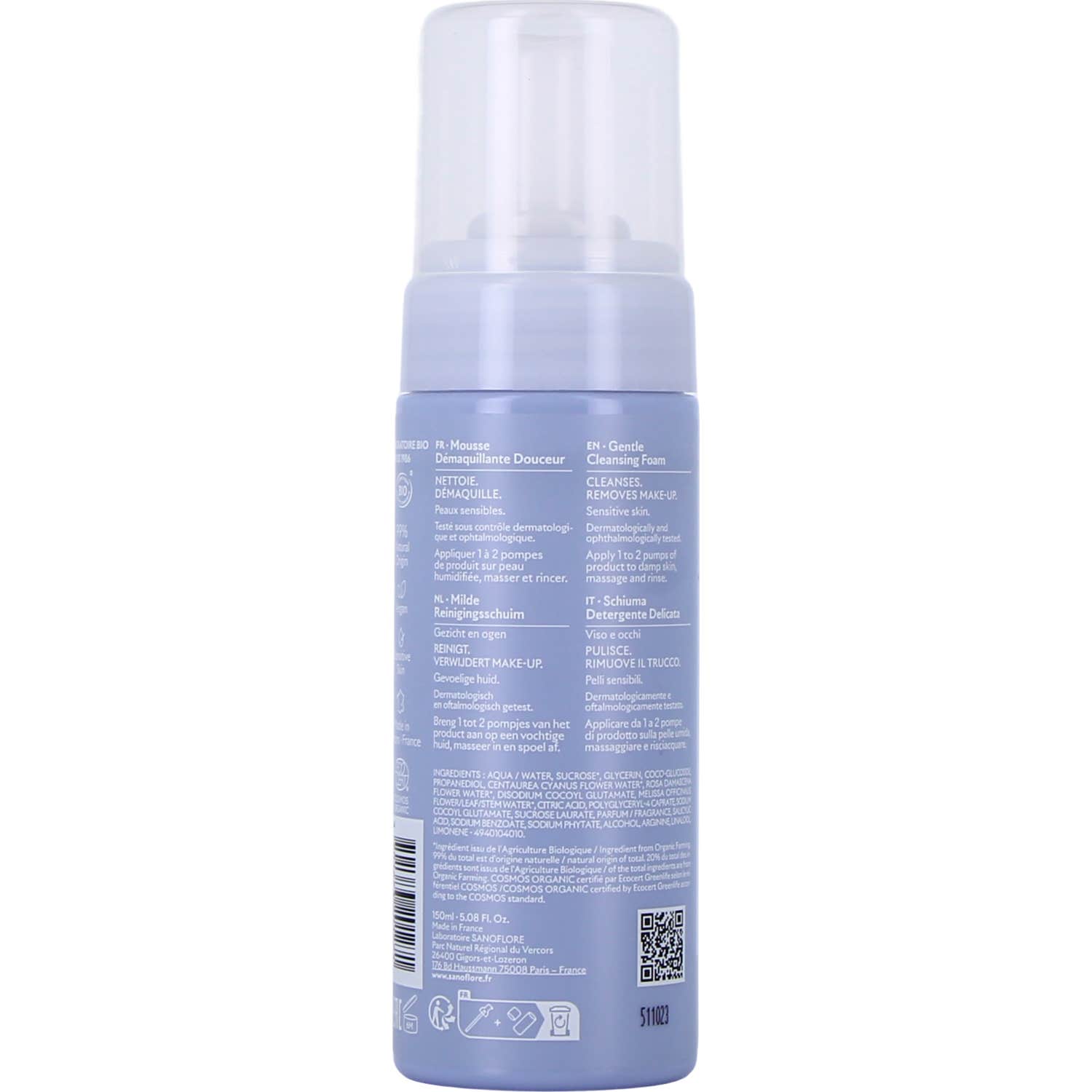 Sanoflore Hydra Ciana Mousse Démaquillante Douce Bio 150 ml est un produit conçu pour le soin du visage, adapté à tous les types de peau, y compris celles qui sont sensibles ou réactives. Cette mousse démaquillante se distingue par sa capacité à nettoyer et à éliminer le maquillage du visage et des yeux en douceur, éliminant les impuretés et les particules de manière efficace, le tout avec une expérience agréable.