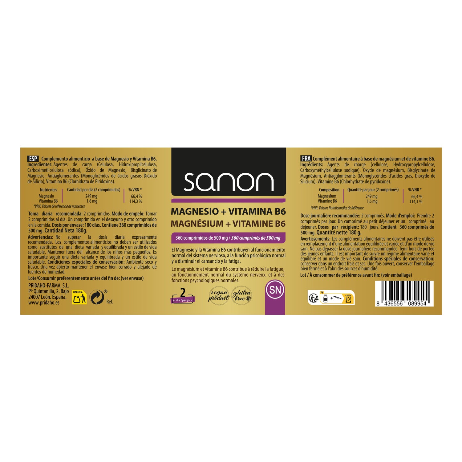 Sanon Magnésium + Vitamine B6 360comp est un complément alimentaire qui contribue au bon fonctionnement du système nerveux, à la fonction psychologique normale et à diminuer la fatigue et l'épuisement.