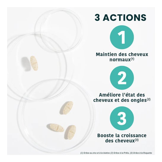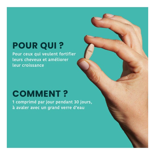 Un seul comprimé par jour suffit pour nourrir, protéger et revitaliser vos cheveux de l’intérieur, pour une chevelure plus forte, plus dense et naturellement éclatante.
