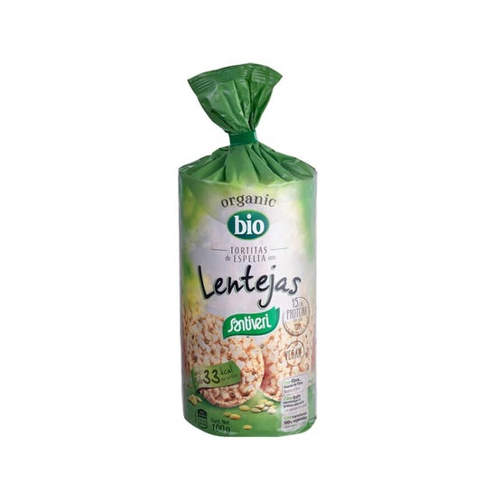 Espelta et crêpes à lentilles faites avec des ingrédients de l'agriculture biologique. Ils sont un substitut sain au pain qui peut être utilisé dans le petit déjeuner, les repas, les collations ou pour couper entre des heures. Ils facilitent une source importante de protéines et de fibres. Les tortitas ne contiennent pas de lactose ou de sucre et sont un produit végétalien certifié.