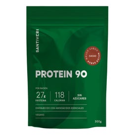 Santiveri Protein 90 Doypack Cacao 300 gr est un préparé alimentaire en poudre à haute teneur en protéines, conçu pour la préparation de boissons. Ce produit contient des édulcorants, ce qui en fait une option agréable au palais.