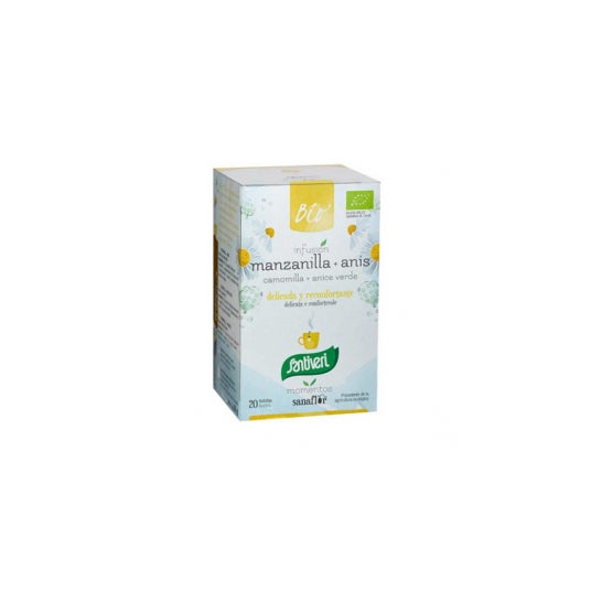Santiveri Sanaflor Inf. Manzanilla+Anis Bio est une infusion conçue pour promouvoir le bien-être digestif et des moments de relaxation. Cette formule écologique combine la douceur de la camomille avec la touche aromatique de l'anis, idéale pour ceux qui apprécient la qualité et la soutenabilité.