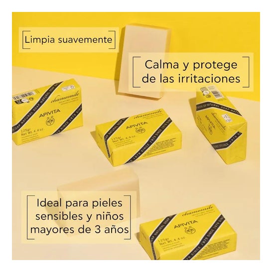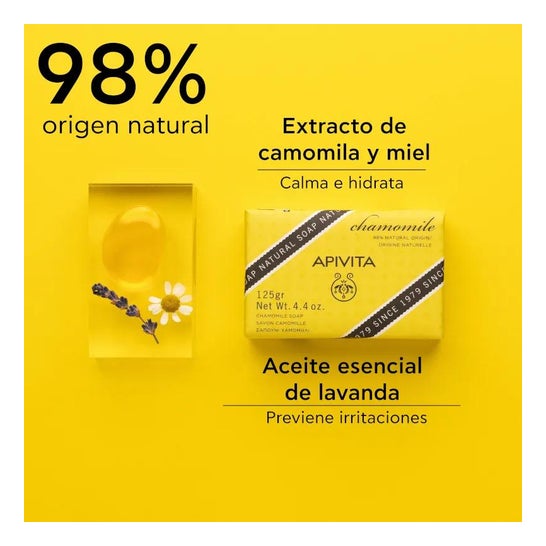 Le savon à la camomille d'Apivita est une solution hygiénique 100% naturelle qui vous procurera un nettoyage maximal pour votre visage et votre corps tout en maintenant l'hydratation naturelle de la peau. De plus, grâce à son effet émollient et adoucissant, vous pourrez calmer et protéger la peau contre les démangeaisons et les irritations. C'est donc un produit idéal pour les peaux sensibles.