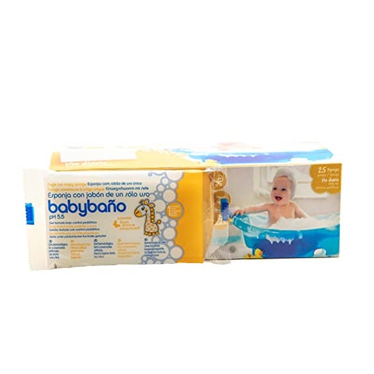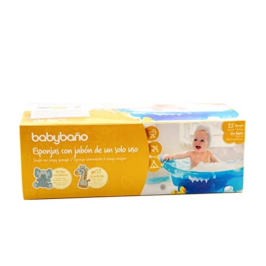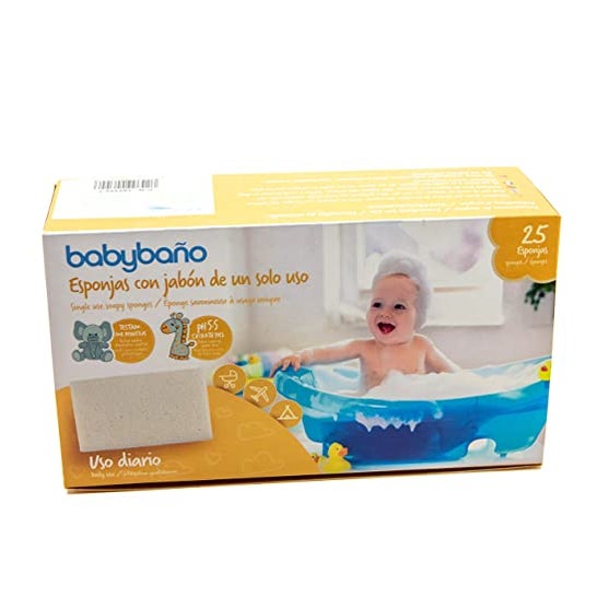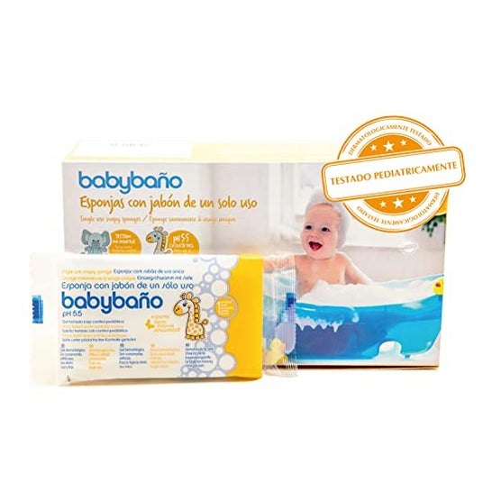 L'éponge à savon à usage unique Babybaño pour bébés est une éponge avec savon intégré pour les bébés de 0 à 3 ans. Avec un parfum de pêche.