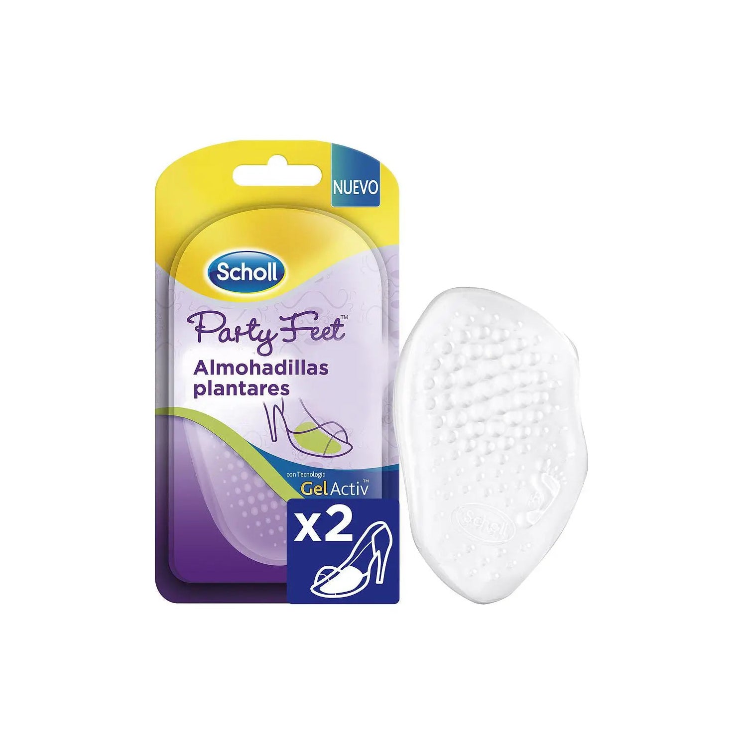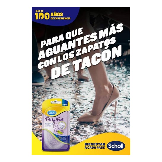 Scholl Party Feet Coussinets Pour Talons 1 Paire sont des semelles confortables pour la plante des pieds fabriqués en gel transparent qui préviennent les douleurs à l'appui du pied.