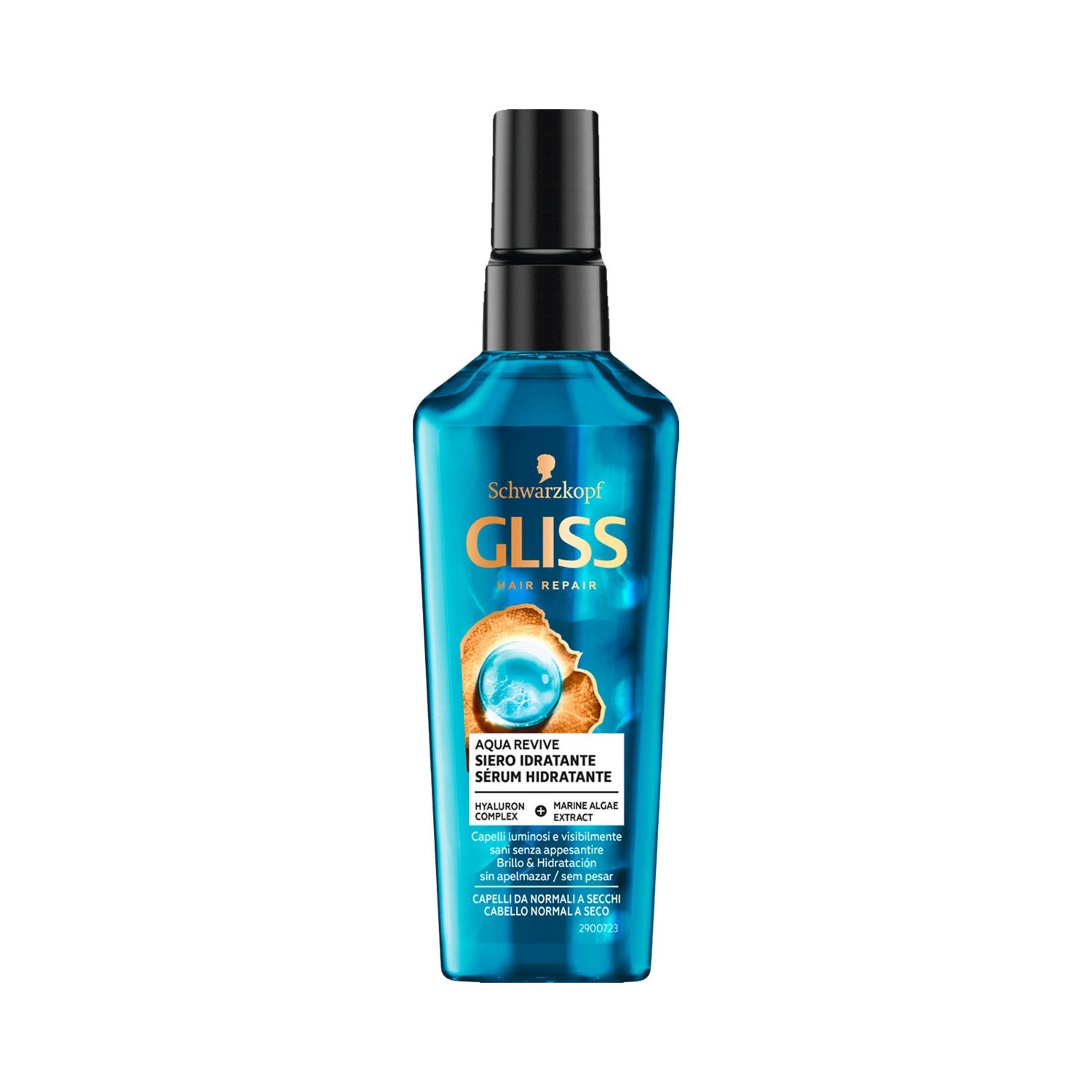 Schwarzkopf Gliss Aqua Revive Sérum Hydratant de 75ml est un traitement conçu spécifiquement pour cheveux secs. Ce sérum, qui intègre le Système HaptIQ innovant, crée des micro-liaisons qui renforcent la structure des cheveux, offrant une hydratation qui peut durer jusqu'à 48 heures avec une seule application par rapport aux cheveux non traités.