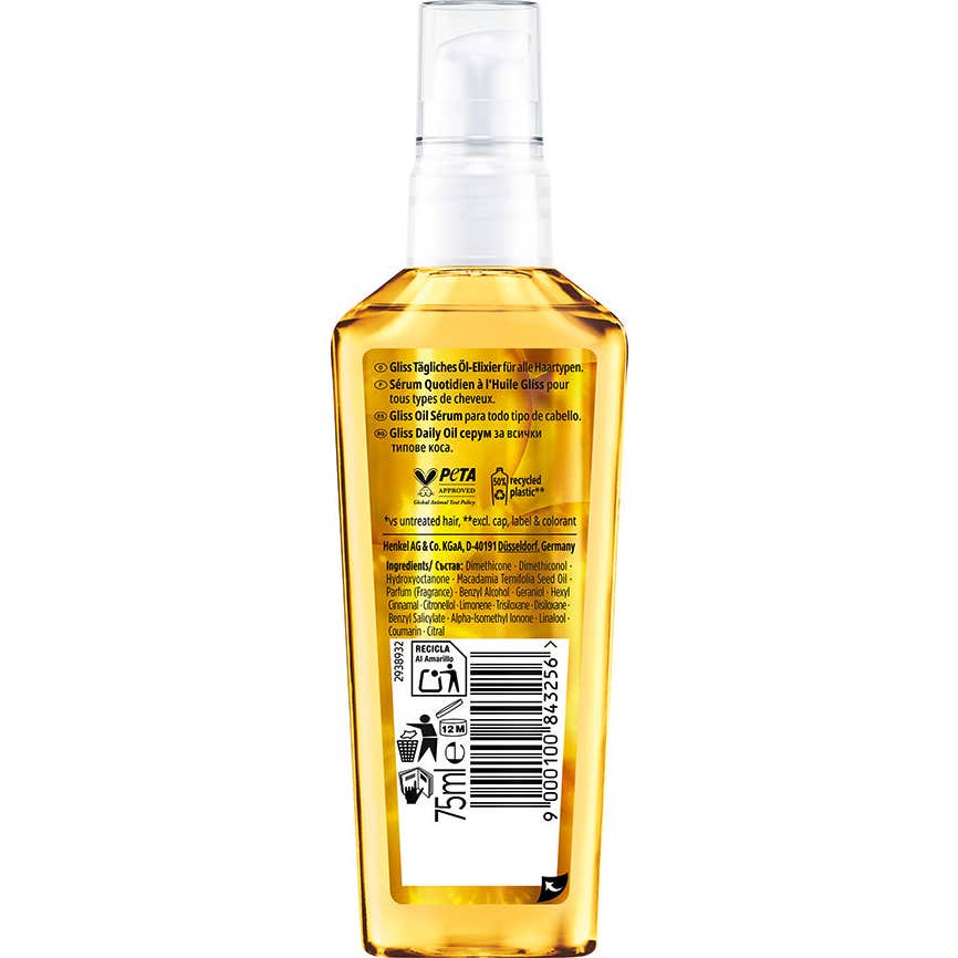 Schwarzkopf Gliss Daily Oil Sérum, avec un format de 75 ml, est un produit conçu pour le soin quotidien des cheveux. Sa formule légère offre une nutrition efficace sans laisser de sensation de lourdeur. Il convient à tous les types de cheveux, se distinguant par sa teneur en huile d'argan, qui apporte douceur et brillance.