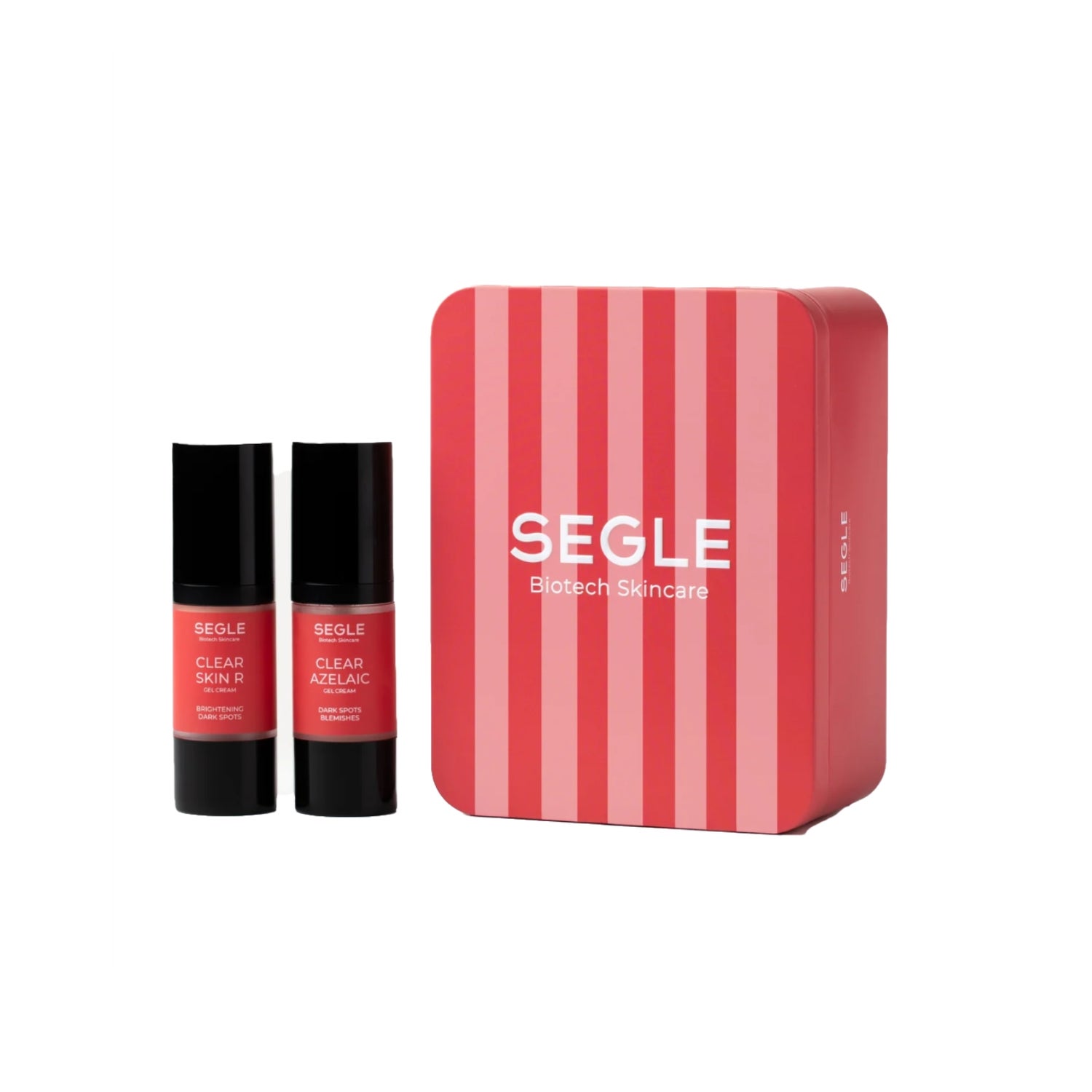 Pack Clear Azelaic + Clear Skin R 2x30 ml réunit Clear Azelaic (gel crème de jour) et Clear Skin R (gel crème de nuit). C'est un traitement anti-taches conçu pour réduire l'intensité des taches telles que :