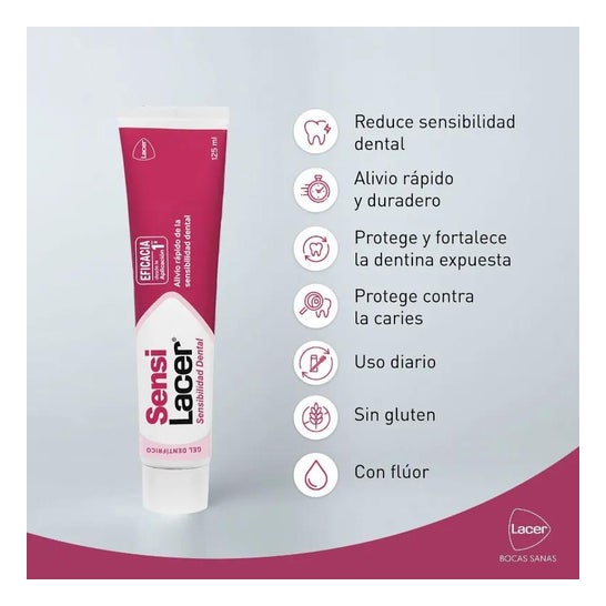 Lacer SensiLacer SensiLacer Dentifrice pour sensibilité dentaire Gel fluoré 125ml est un dentifrice fluoré indiqué pour aider à traiter la sensibilité dentaire.