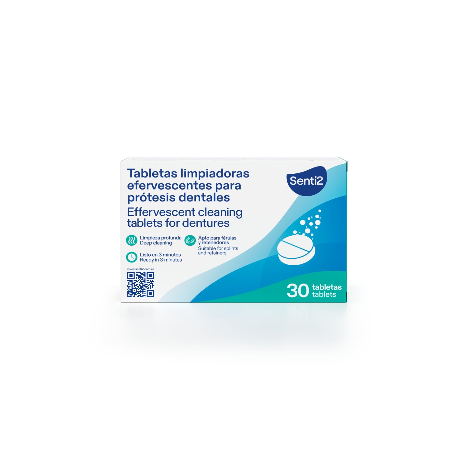 Senti2 Tablettes Nettoyantes Prothèses Dentaires 30 unités sont des tablettes nettoyantes effervescentes qui apportent une agréable sensation dans la bouche après leur utilisation grâce à leur goût mentholé.