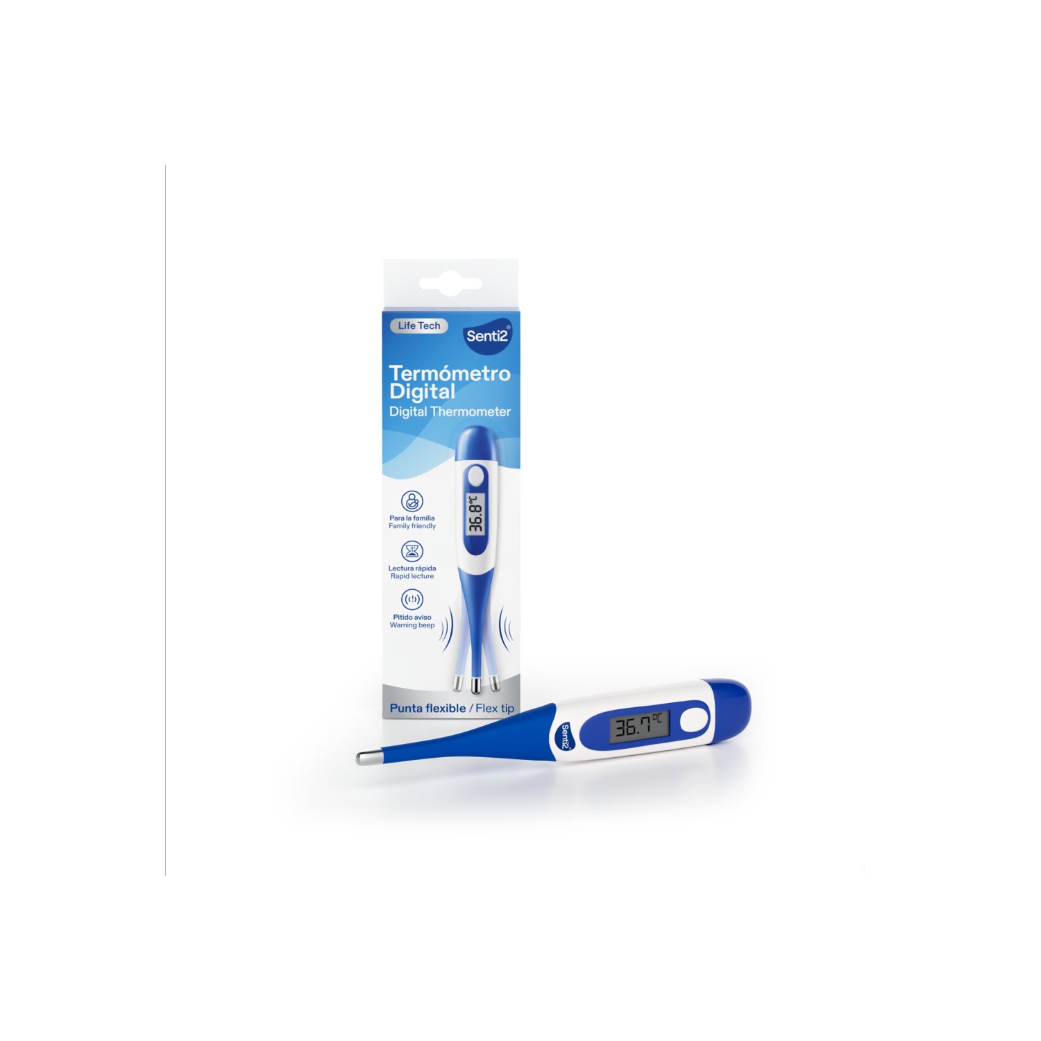 Senti2 Thermomètre Digital Pointe Flexible 1ud est un thermomètre digital qui mesure la température de manière simple et efficace.