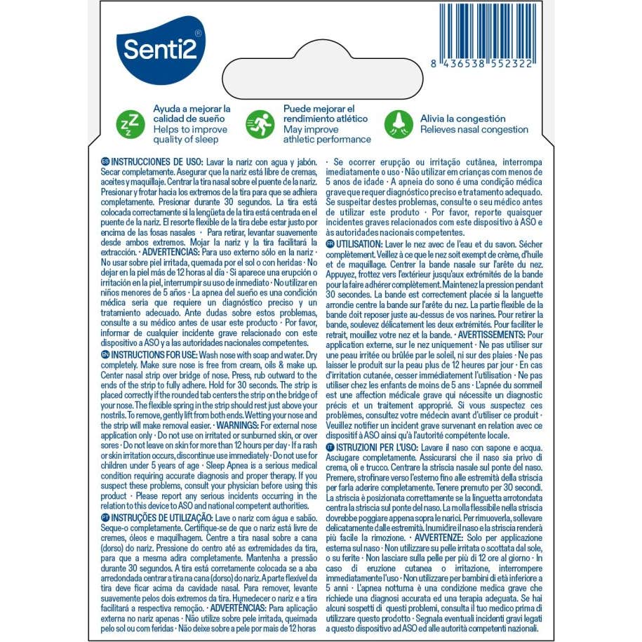 Pour usage externe uniquement sur le nez · Ne pas appliquer sur une peau irritée, brûlée par le soleil ou avec des blessures · Ne pas laisser sur la peau plus de 12 heures par jour · Si une éruption ou une irritation de la peau apparaît, interrompre immédiatement son utilisation · Ne pas utiliser chez les enfants de moins de 5 ans · L'apnée du sommeil est une condition médicale sérieuse qui nécessite un diagnostic précis et un traitement approprié. En cas de doute sur ces problèmes, consulte à ton médecin avant d'utiliser ce produit · Veuillez signaler tout incident grave lié à ce dispositif à l'ASO et aux autorités nationales compétentes.