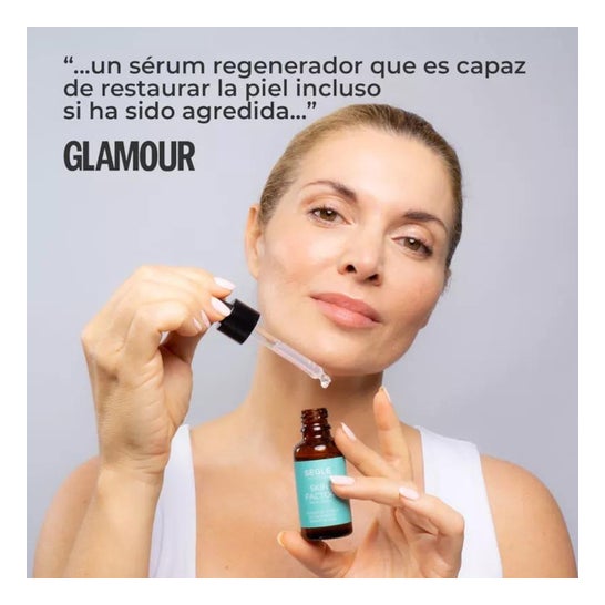 Segle Skin Factor Serum Sérum de 30 ml aux grandes propriétés régénératrices et anti-inflammatoires, qui réduit les rides, améliore la texture de la peau et lui donne de l'élasticité. Il contient de l'acide hyaluronique et du collagène marin, des principes qui hydratent, protègent et tonifient notre peau. De plus, elle contient également de la vitamine E aux propriétés antioxydantes pour protéger la peau des agents extérieurs.