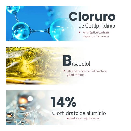 Déodorant qui aide à réguler la transpiration excessive des aisselles. Il offre une triple action, anti-transpirante, déodorante et rafraîchissante qui procure un effet prolongé pendant 24 heures. Convient aux femmes. Contient du chlorhydrate d'aluminium qui supprime naturellement les odeurs corporelles. Il possède également un agréable parfum dermocompatible. Format de 2 unités de 75ml.