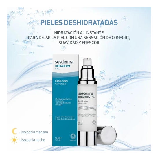 Sesderma Hidraderm Hyal Facial Cream 50ml est une crème spécialement conçue pour hydrater tous les types de peaux, même les plus sensibles, tout en prévenant le vieillissement cutané.
