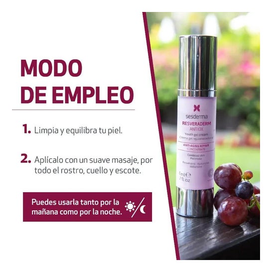 Sesderma Resveraderm est une crème spécialement conçue pour renforcer les propriétés bénéfiques du resvératrol, soigner et protéger l'ADN cellulaire, améliorer la protection de la peau et aider à prévenir le vieillissement prématuré de notre peau ;