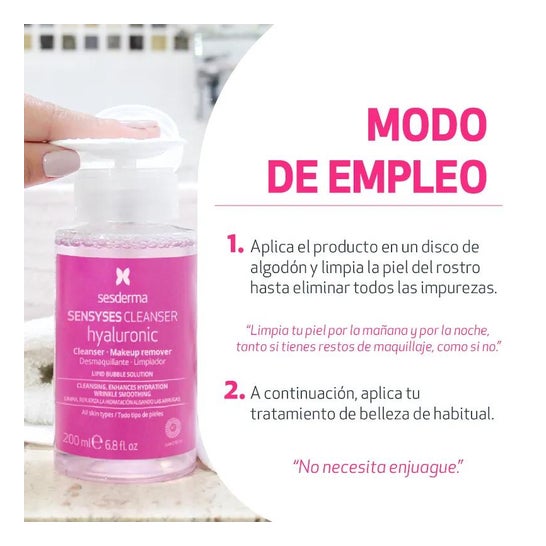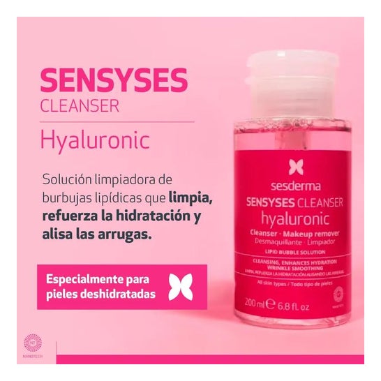 Nettoyant à l'acide hyaluronique qui élimine le maquillage et les impuretés de la peau sans la dessécher, en apportant de l'hydratation et en réduisant les rides.