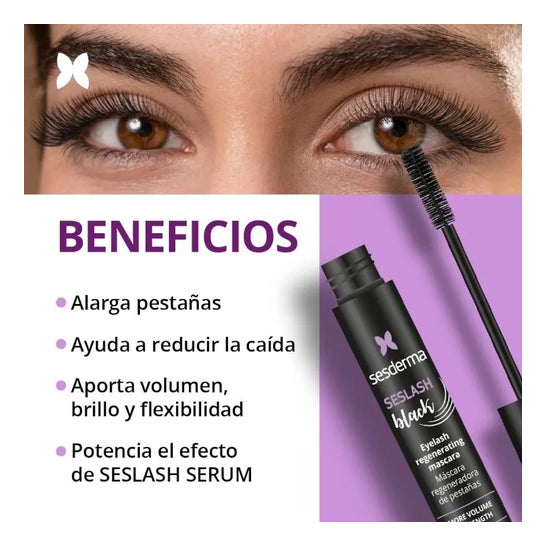 Sesderma Seslash Black Eyelash Regenerating Mascara 5ml est un mascara aux pigments noirs qui aide à régénérer et à renforcer les cils. Il aide également à réduire leur chute et à leur donner du volume et de la longueur. Contient 5ml.