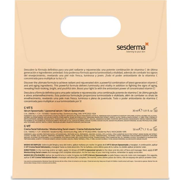 Sesderma The Power Of 5 C-Vit Pack Luminosité est un ensemble qui comprend deux produits conçus pour restaurer la luminosité, la fermeté et la vitalité de la peau du visage.