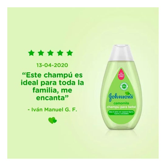 Shampooing doux pour l'hygiène quotidienne des cheveux délicats des bébés. Il aide à nettoyer les cheveux en douceur et à protéger le cuir chevelu des irritations et/ou du dessèchement. Il a également une texture crémeuse qui ne pique pas les yeux et un agréable parfum naturel. Formulé à base d'extrait de camomille et d'un ingrédient actif appelé Don't Cry Any More®, qui favorise l'hydratation et renforce la fonction de barrière. Convient aux enfants et aux adultes. Sans colorants, phtalates, sulfates, alcool et savon. Testé par des pédiatres et des dermatologues. Hypoallergénique. Présenté dans un emballage recyclable avec un distributeur pratique pour une utilisation facile.