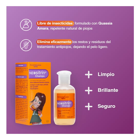 Neositrín Shampoo Anti-Poux 100ml est un shampoo pour cheveux secs qui aide à éliminer les poux rapidement et facilement.
