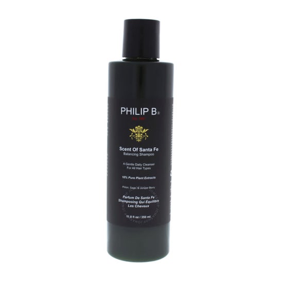 Philip B Scent Of Santa Fe Shampoo 350ml est un shampooing équilibrant conçu pour le soin des cheveux et du cuir chevelu. Ce produit, adapté à tous les types de cheveux, agit principalement sur le cuir chevelu, aidant à :