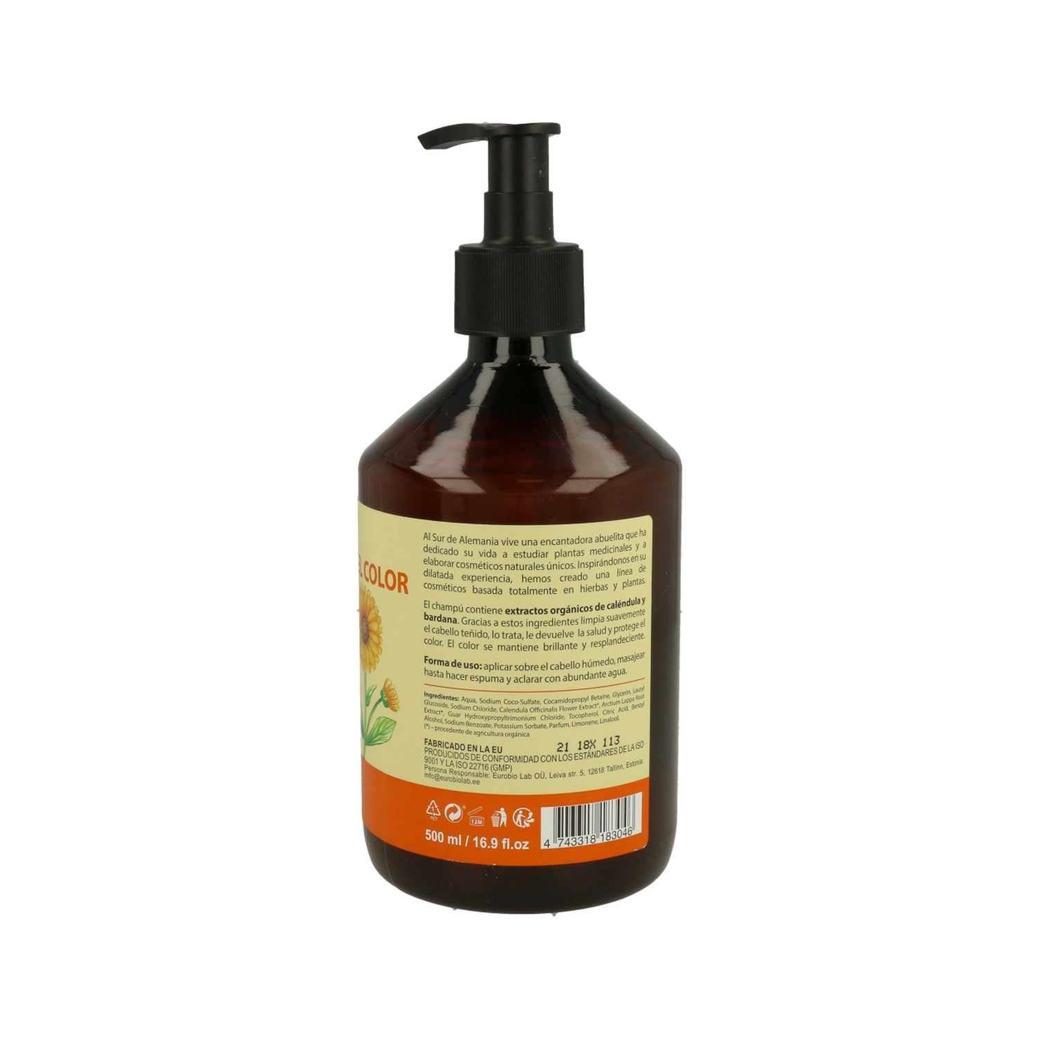 Shampooing protecteur de couleur aux extraits organiques de calendula et de bardane, qui aident à obtenir une brillance très naturelle sur les cheveux teints, en améliorant l'aspect de la couleur de la racine à la pointe. Sa formule aide à prévenir la formation de pellicules, stimule la croissance des cheveux et les renforce, en améliorant la fibre capillaire et en la nourrissant grâce à l'apport de vitamines, de sels minéraux et de protéines qui la soignent de l'intérieur.