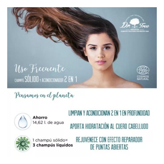 Dr. Tree 2 In 1 Frequent Use Solid Shampoo 75g est un shampoing solidefréquemment utilisé. Nettoie et hydrate les cheveux en profondeur pour des cheveux jeunes, brillants et forts avec un effet réparateur sur les pointes fourchues.