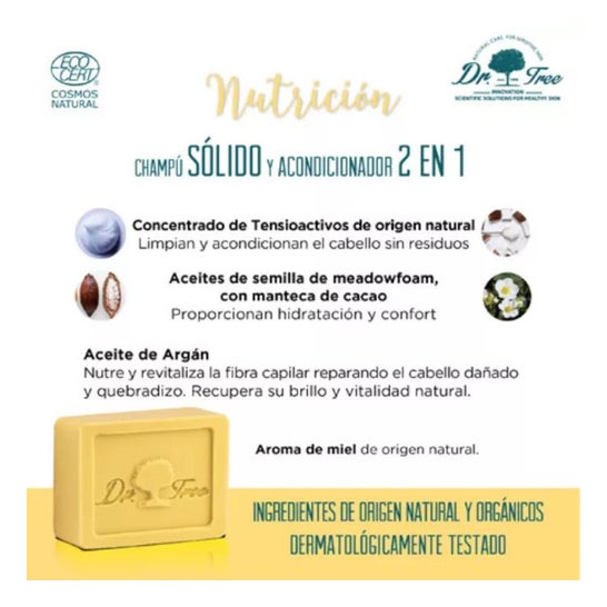 Leshampoing nutritionnel 2 en 1 Dr. TreeSolid 75g est un shampoing solide qui nettoie et revitalise les cheveux. Il nourrit intensément, apporte un confort au cuir chevelu, revitalise la fibre capillaire en réparant les cheveux abîmés et cassants.