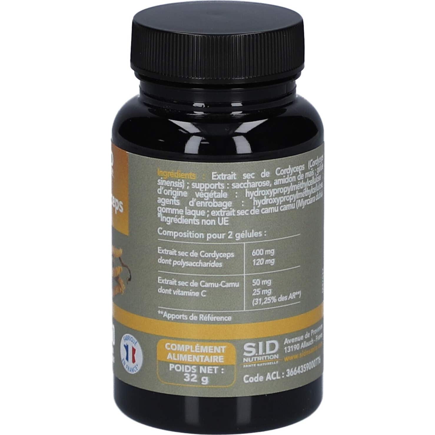 SID Nutrition Cordyceps 60 Perles est un complément alimentaire qui présente une formule innovante sous forme de microgranules. Ce produit combine le champignon Cordyceps avec Camu Camu, qui est une source riche en vitamine C. Cette combinaison est conçue pour renforcer les effets du Cordyceps.
