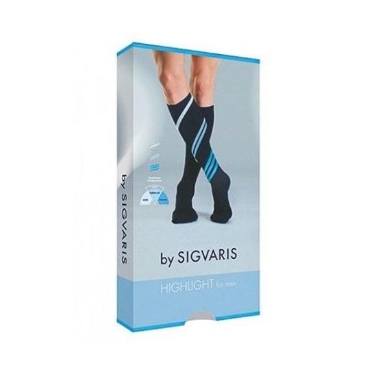 Sigvaris Highlight For Men Chaussette Marine Pointe Fermée LN 1 Paire est l'option parfaite pour les hommes qui souhaitent prévenir et soulager la sensation de jambes fatiguées et lourdes après de longues journées debout ou assis.