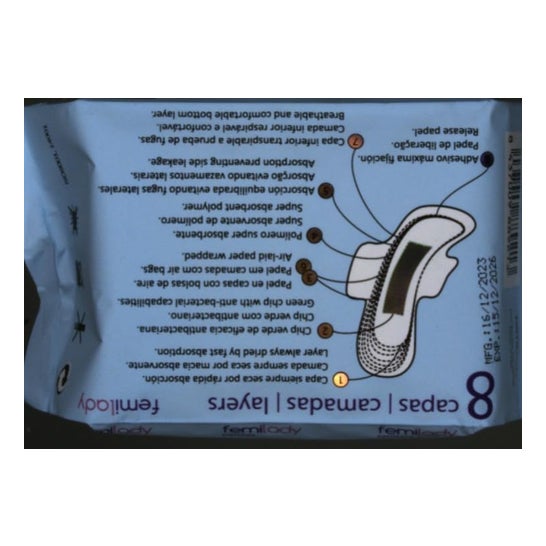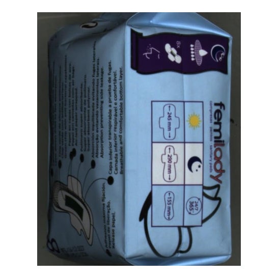 Silvestre Compresas Noche 8 Capas 8 Uds est un produit conçu pour offrir une protection nocturne pendant la période menstruelle. Il se compose de 8 couches d'absorption qui offrent une plus grande sécurité et un plus grand confort pendant la nuit. Pour l'utiliser, il suffit de déplier la serviette et de l'attacher à votre sous-vêtement. Changez-la régulièrement pour maintenir une bonne hygiène. Ne pas utiliser si l'emballage individuel est endommagé. En cas d'irritation, cesser l'utilisation et consulter un médecin. Tenir hors de portée des enfants. Ingrédients : coton doux et respirant, cellulose absorbante, polyéthylène imperméable, couche adhésive, contrôle des odeurs, couche dorsale respirante et couche absorbante supplémentaire pour la nuit.