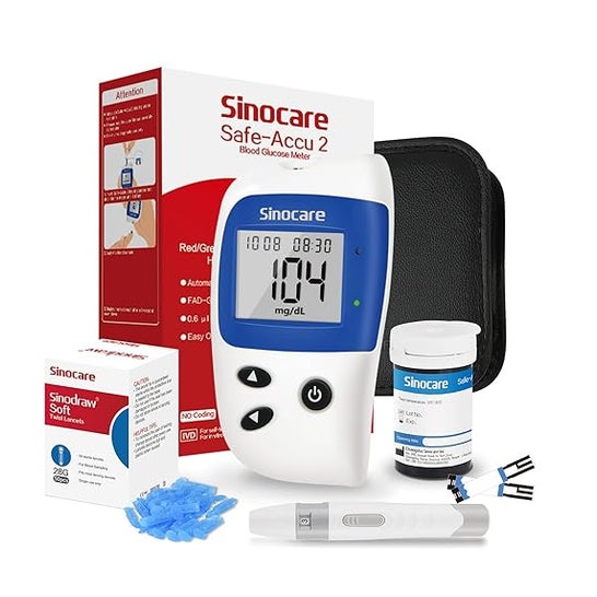 Sinocare Safe-Accu2 est un kit qui comprend un glucomètre et 25 bandelettes réactives pour la mesure de la glucose dans le sang. Cet appareil se caractérise par sa haute précision et stabilité, ce qui en fait un outil fiable pour le contrôle des niveaux de sucre dans le sang.