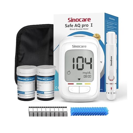 Sinocare Safe Aq Pro I Glucomètre 50 Kit Électrode + 500 Mémoire est un dispositif conçu pour faciliter le contrôle de la glycémie. Ce kit comprend :