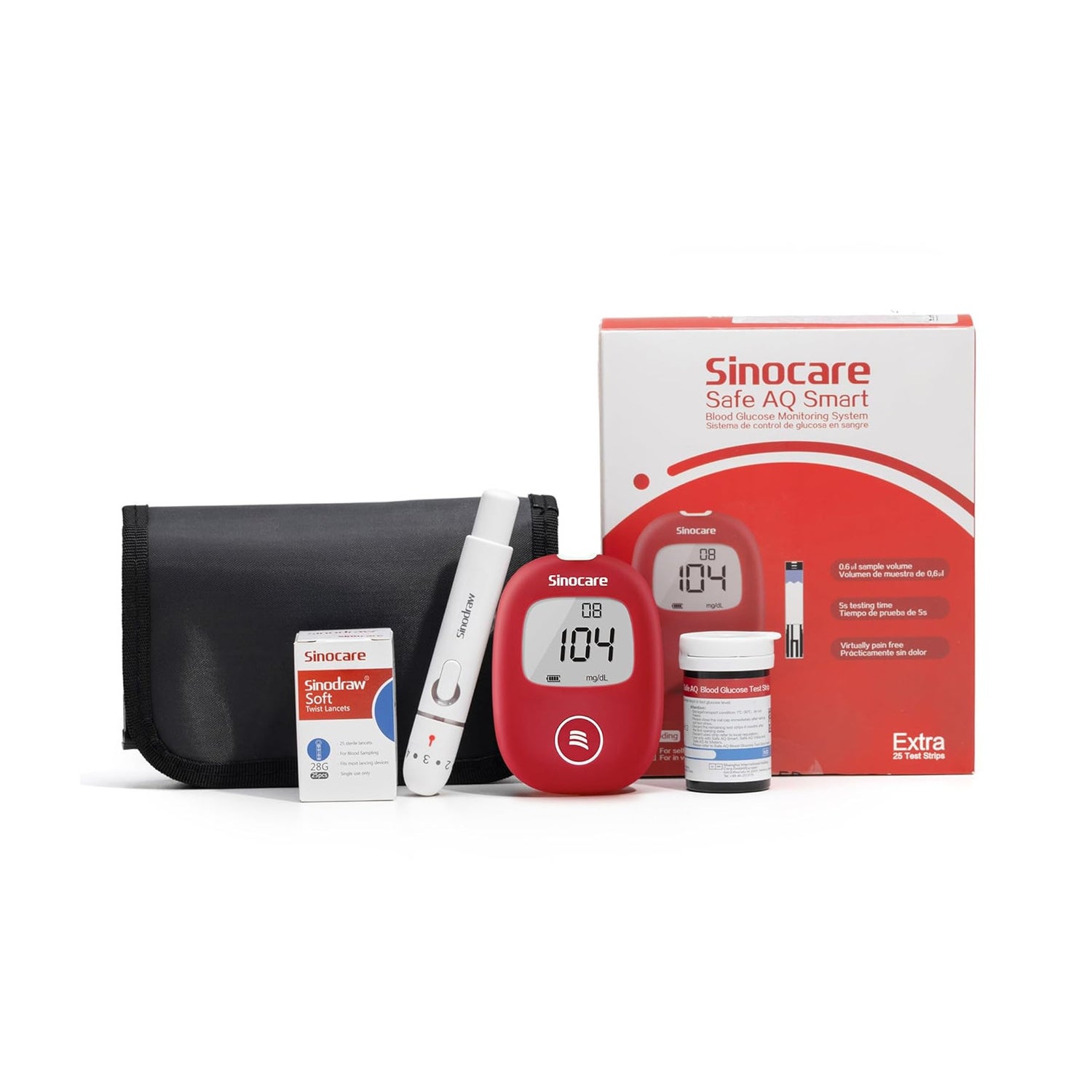Sinocare Safe Aq Smart Kit 25 + 25 + Glucomètre + Sac est un ensemble conçu pour faciliter le suivi de la santé. Ce kit comprend un glucomètre et 50 bandelettes réactives, offrant une solution complète et accessible pour le suivi des niveaux de glucose.