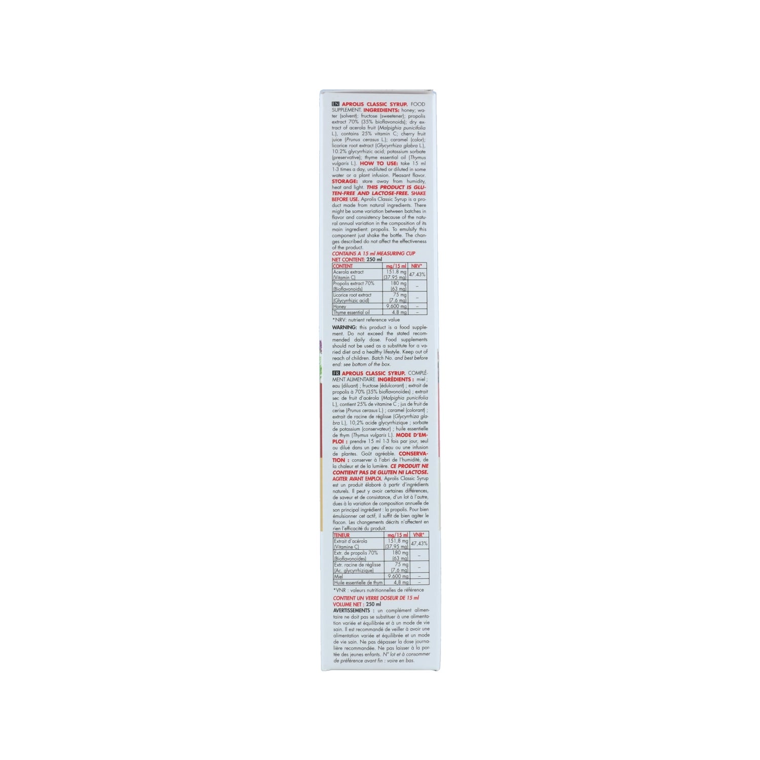 Aprolis Sirop 250ml est un complément alimentaire à base de miel, propolis, acerola et extraits de plantes indiqué dans les cas de :